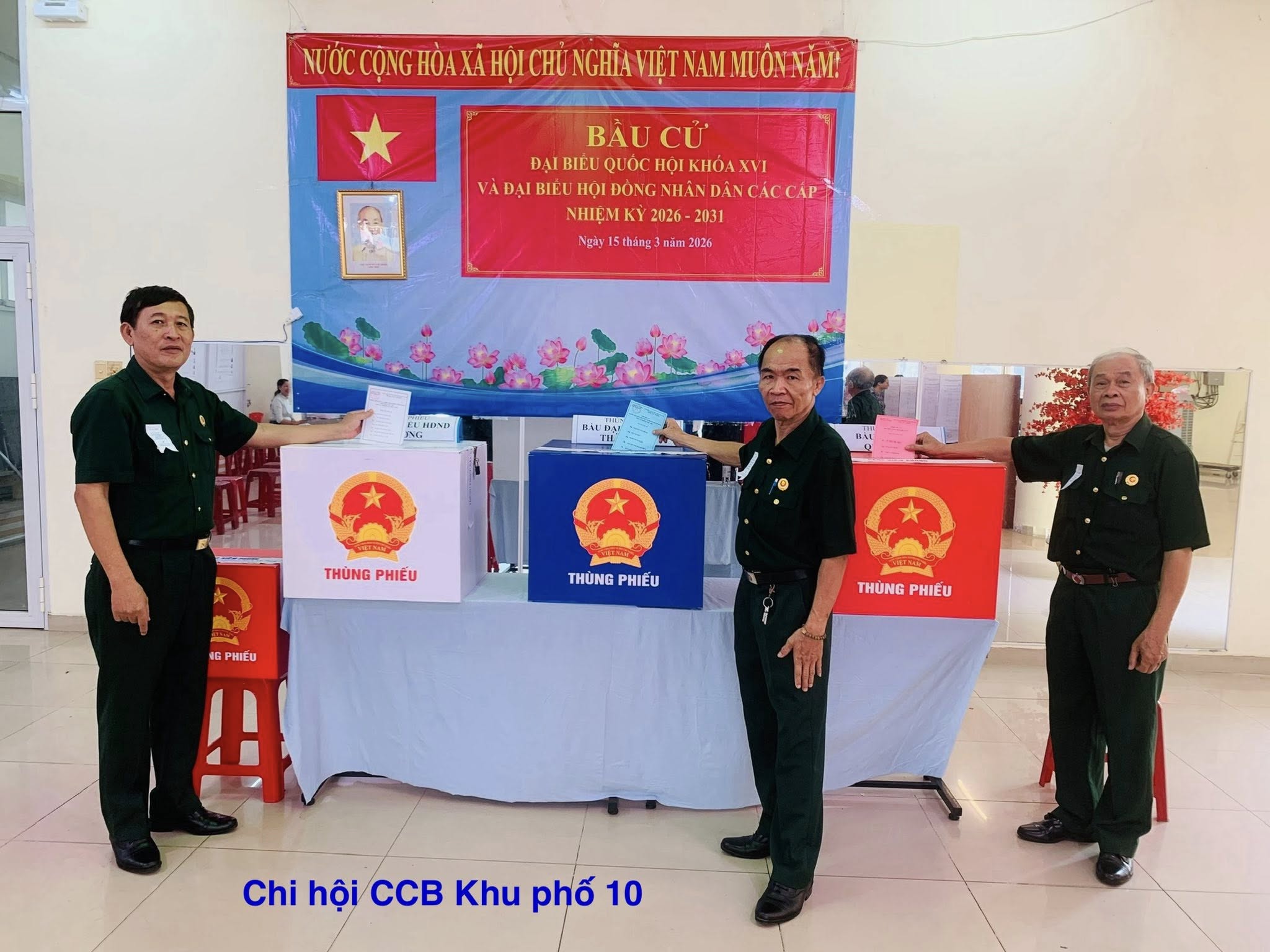 Trang chủPhường/Xã Phường/Xã Cán bộ, hội viên Hội CCB Phường Gò Vấp tích cực tham gia Ngày hội non sông, Bầu cử đại biểu Quốc hội… Đăng bởi Quản trị viên Chủ Nhật, 15/03/2026 13:24 14 Cán bộ, hội viên Hội CCB Phường Gò Vấp tích cực tham gia Ngày hội non sông, Bầu cử đại biểu Quốc hội khoá XVI và Hội đồng nhân dân các cấp Nhiệm kỳ 2026 – 2031. (Cập nhật đến 19h00 ngày 15/3/2026) Bài trướcCựu Chiến binh phường Tân Hòa nêu cao tinh thần trách nhiệm trong Ngày bầu cử…Bài tiếp theoCựu chiến binh phường Phước Thắng cùng nhân dân rộn ràng trong Ngày hội non sông 15/3/2026… Tin tức liên quan Phường/Xã THÔNG CÁO BÁO CHÍ TÌNH HÌNH BẦU CỬ QUỐC HỘI VÀ ĐẠI BIỂU HĐND CÁC CẤP NHIỆM KỲ 2026-2031… 16 Tháng 3, 2026 Phường/Xã Cựu chiến binh phường Phước Thắng cùng nhân dân rộn ràng trong Ngày hội non sông 15/3/2026… 16 Tháng 3, 2026 Phường/Xã Cựu Chiến binh phường Tân Hòa nêu cao tinh thần trách nhiệm trong Ngày bầu cử… 15 Tháng 3, 2026 Phổ biến nhất THÔNG CÁO BÁO CHÍ TÌNH HÌNH BẦU CỬ QUỐC HỘI VÀ ĐẠI BIỂU HĐND CÁC CẤP NHIỆM KỲ 2026-2031… 16 Tháng 3, 2026 Cựu chiến binh phường Phước Thắng cùng nhân dân rộn ràng trong Ngày hội non sông 15/3/2026… 16 Tháng 3, 2026 Cựu Chiến binh phường Tân Hòa nêu cao tinh thần trách nhiệm trong Ngày bầu cử… 15 Tháng 3, 2026 NGÀY HỘI TOÀN DÂN 15/3/2026 TRÊN ĐỊA BÀN PHƯỜNG GIA ĐỊNH… 15 Tháng 3, 2026 Xem thêm