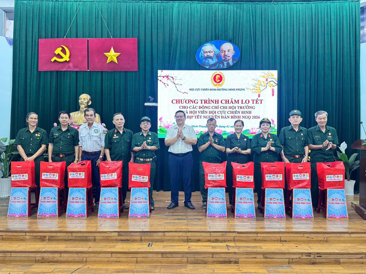 🎁Chiều ngày 09/02/2026, nhân dịp Tết Nguyên đán, Hội Cựu Chiến binh phường Minh Phụng đã tổ chức chương trình trao quà Tết cho 36 chi hội trưởng và các hội viên có hoàn cảnh khó khăn trên địa bàn phường.