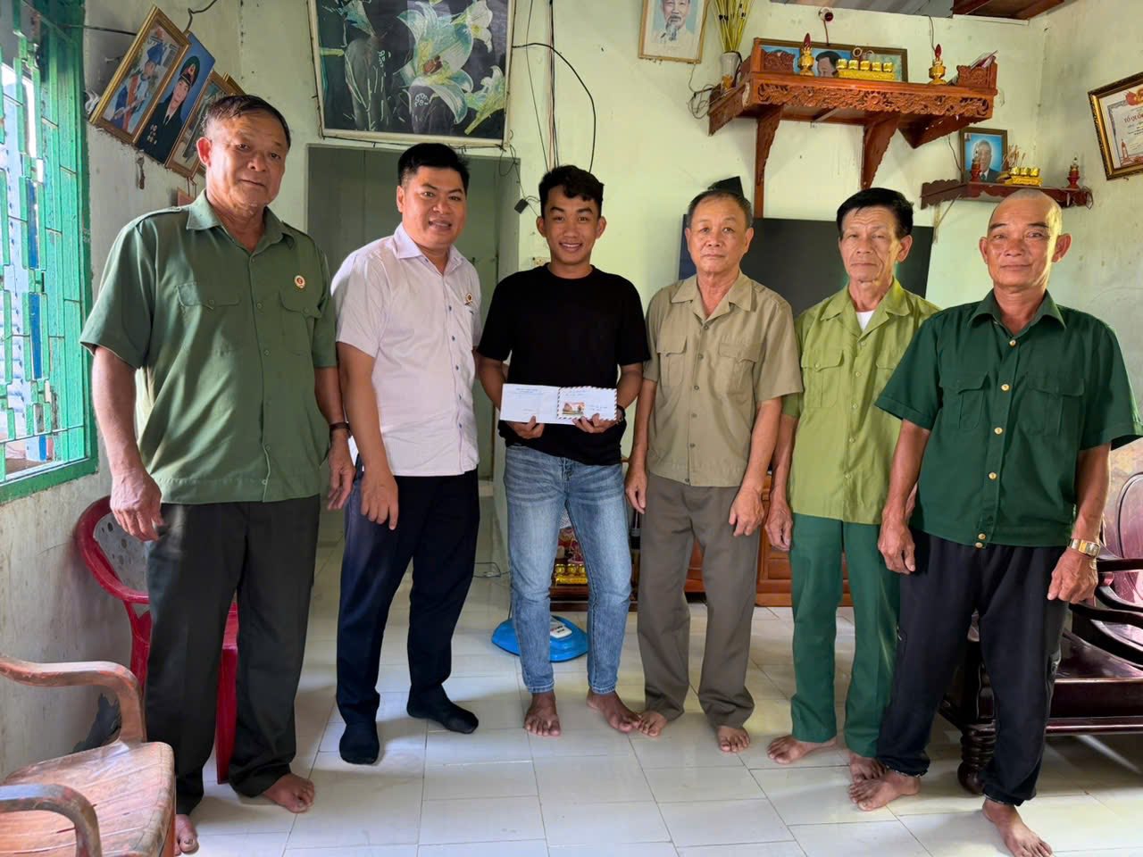 ❤Tại buổi thăm hỏi, lãnh đạo Hội CCB xã đã trao tặng những phần quà thiết thực và ý nghĩa cho 2 tân binh là con em của các gia đình hội viên tiêu biểu. Đây là hoạt động thường niên nhằm khơi dậy lòng tự hào dân tộc và phát huy truyền thống “Bộ đội Cụ Hồ” từ thế hệ cha anh truyền lại cho thế hệ trẻ.