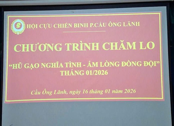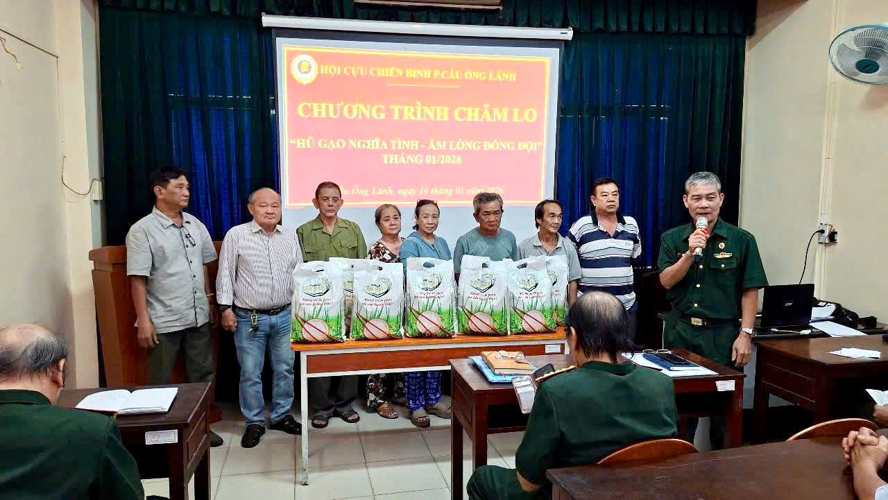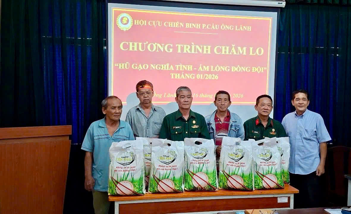 Sáng ngày 16/01/2026, Hội Cựu chiến binh (CCB) Phường Cầu Ông Lãnh đã chính thức ra mắt và thực hiện kỳ đầu tiên của chương trình chăm lo: “Hũ gạo nghĩa tình – Ấm lòng đồng đội”.