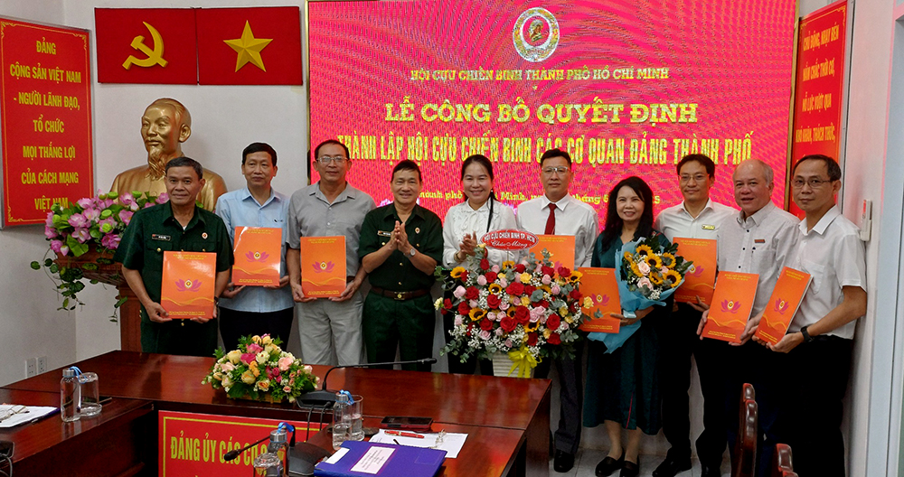 Theo Quyết định số 486/QĐ-CCB do Chủ tịch Hội Cựu chiến binh TP Nguyễn Minh Hoàng ký ngày 09/06/2025 về việc thành lập thành lập Hội CCB các cơ quan Đảng TP với 13 tổ chức hội cơ sở, tổng cộng 245 hội viên và chỉ định Ban Chấp hành, Ban Thường vụ, Chủ tịch, Phó Chủ tịch và Ban Kiểm tra Hội Cựu chiến binh các cơ quan Đảng TP.HCM nhiệm kỳ 2022-2027.