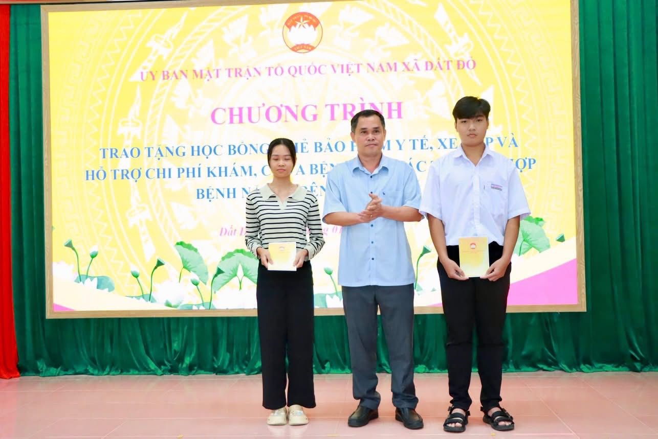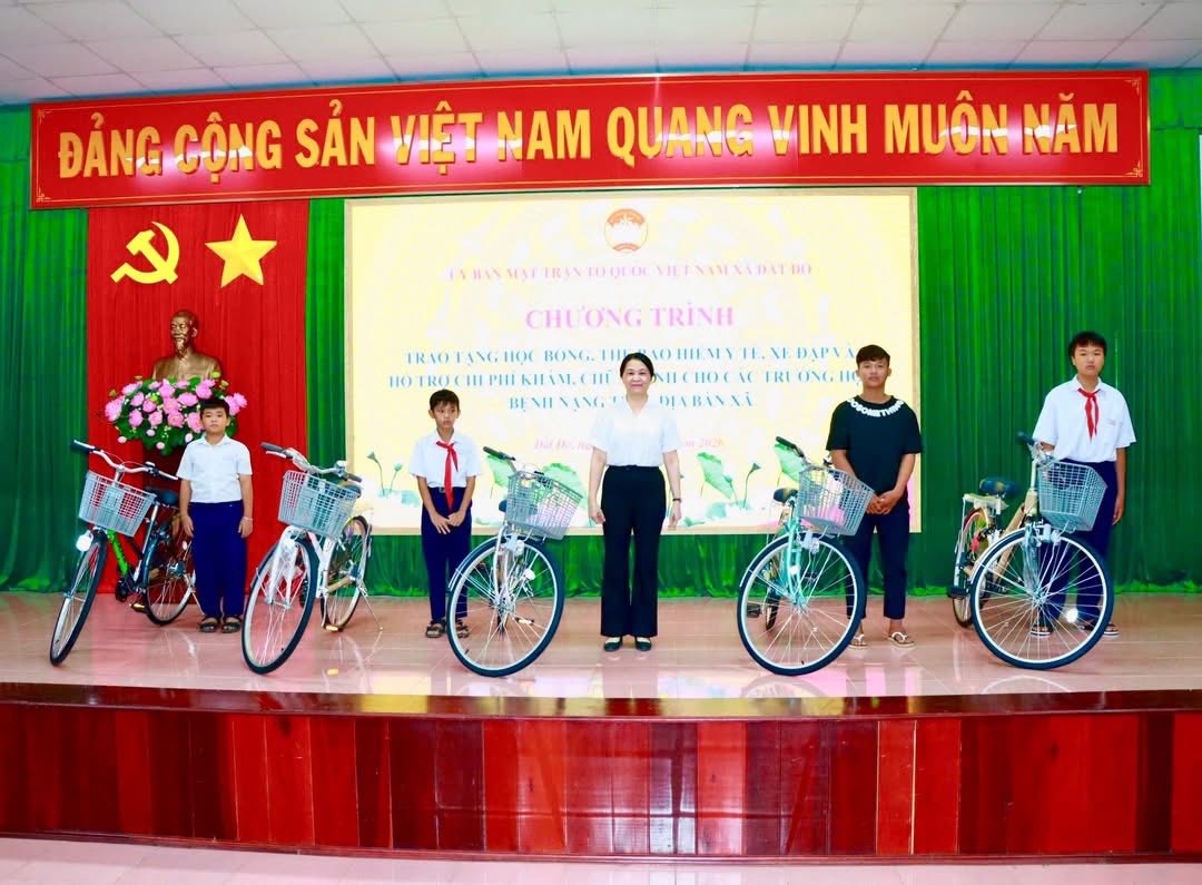 ỦY BAN MTTQ VIỆT NAM XÃ ĐẤT ĐỎ TỔ CHỨC CHƯƠNG TRÌNH TRAO TẶNG HỌC BỔNG, THẺ BHYT, XE ĐẠP VÀ HỖ TRỢ CHI PHÍ KHÁM CHỮA BỆNH CHO CÁC TRƯỜNG HỢP BỆNH NẶNG